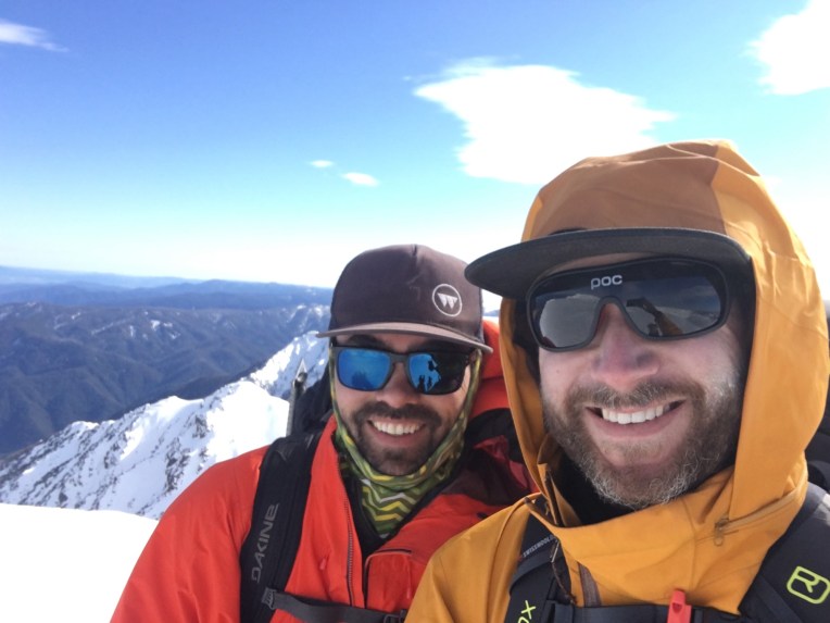 Here’s a pic of me and a good mate exploring the backcountry around Blue Lake and Mt Carruthers.”